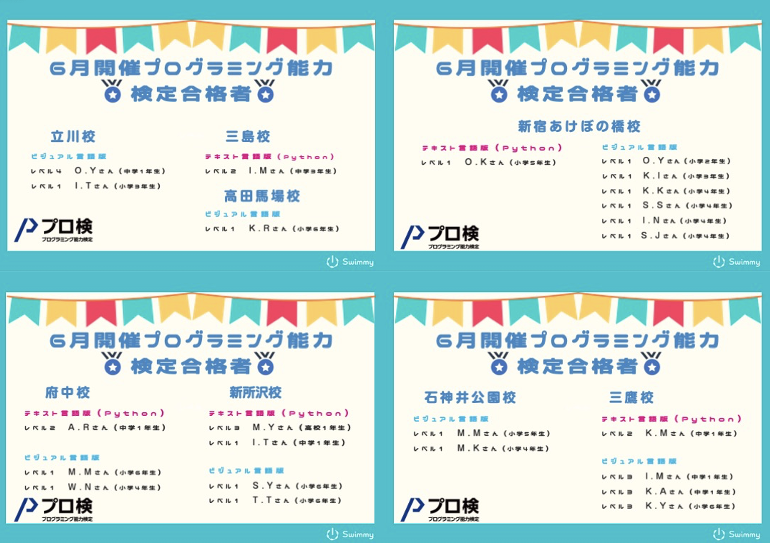 6月開催 プログラミング能力検定合格者